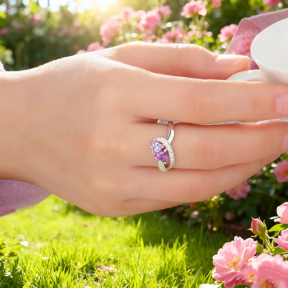 Anello Personalizzato Argento 925 | Doppia Pietra di Nascita & Incisione