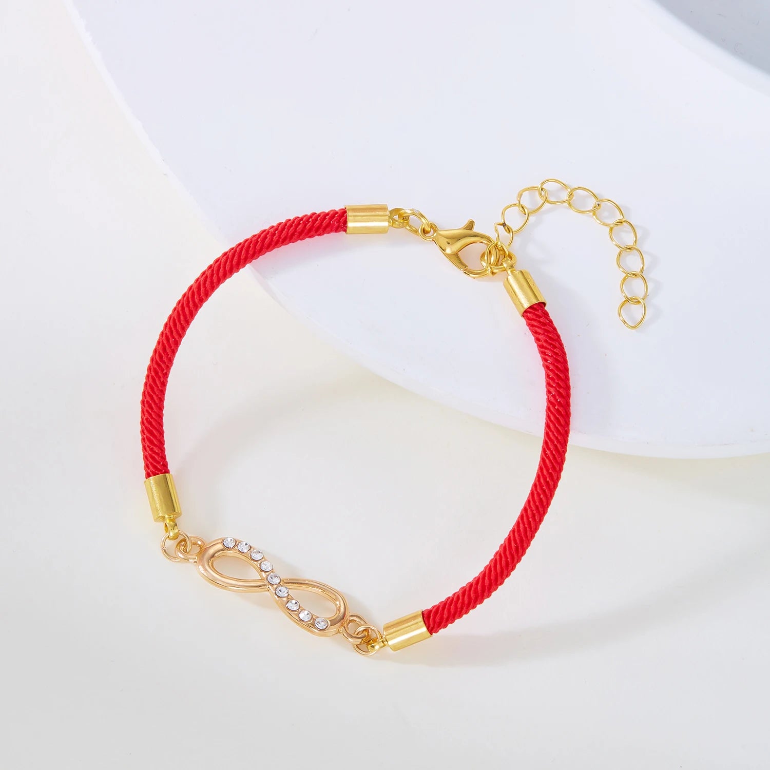 - Materiale: Cordino rosso intrecciato, simbolo infinito